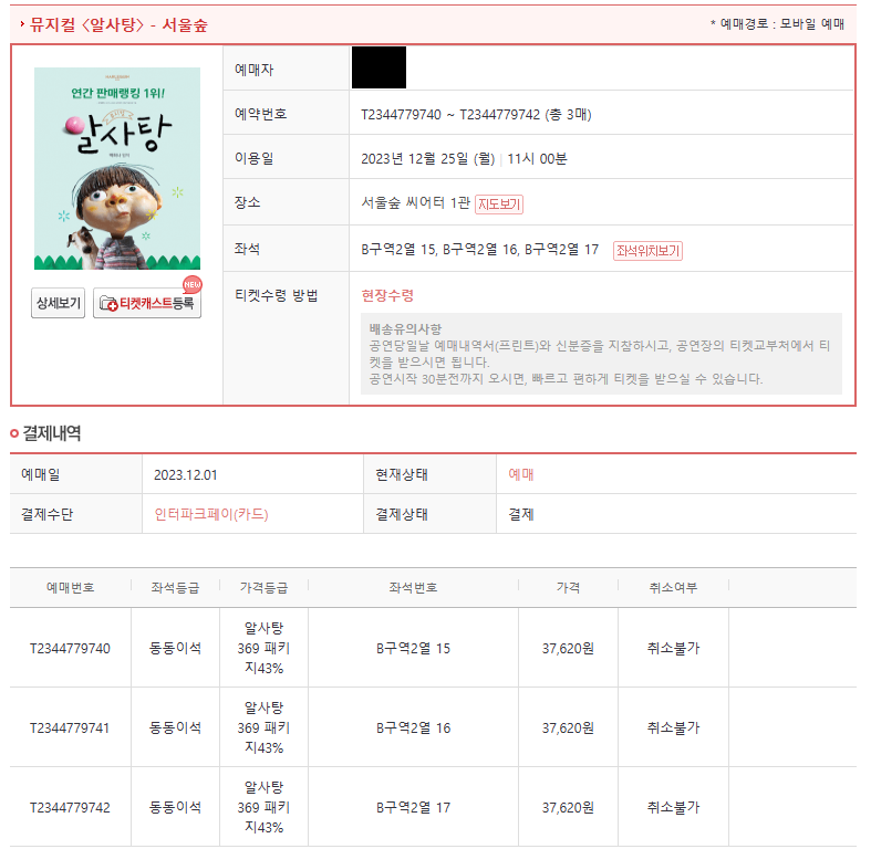 예전에 책으로 한 번 봤었던 알사탕 책을 찾아보니 뮤지컬로도 하고 있어서 크리스마스에 가족 다 같이 보러 가기로 하였다.