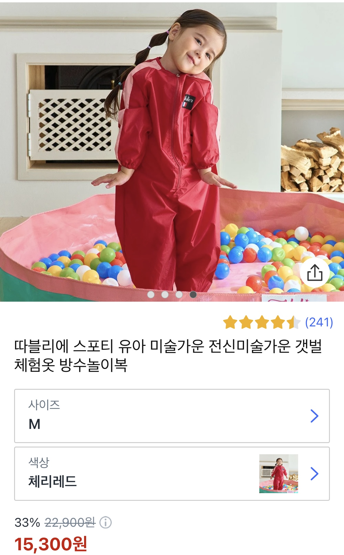 어릴 때 쓰던 미술 가운이 이제 너무 오래돼서 많이 더러워지고 크기도 안 맞아져서 새로 사기로 했습니다.