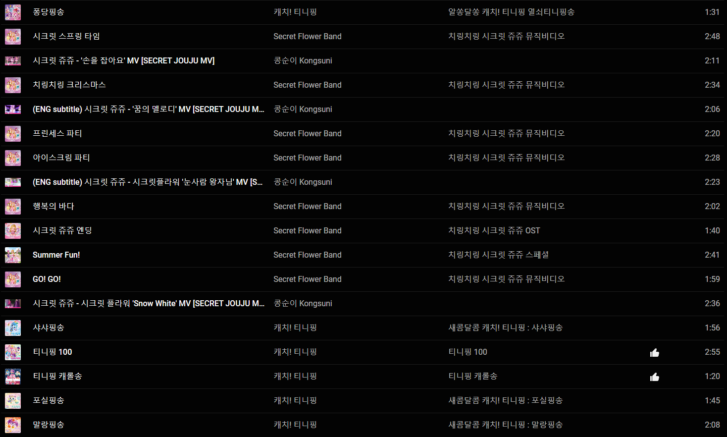 티니핑 + 시크릿 쥬쥬 노래 플레이리스트 공유