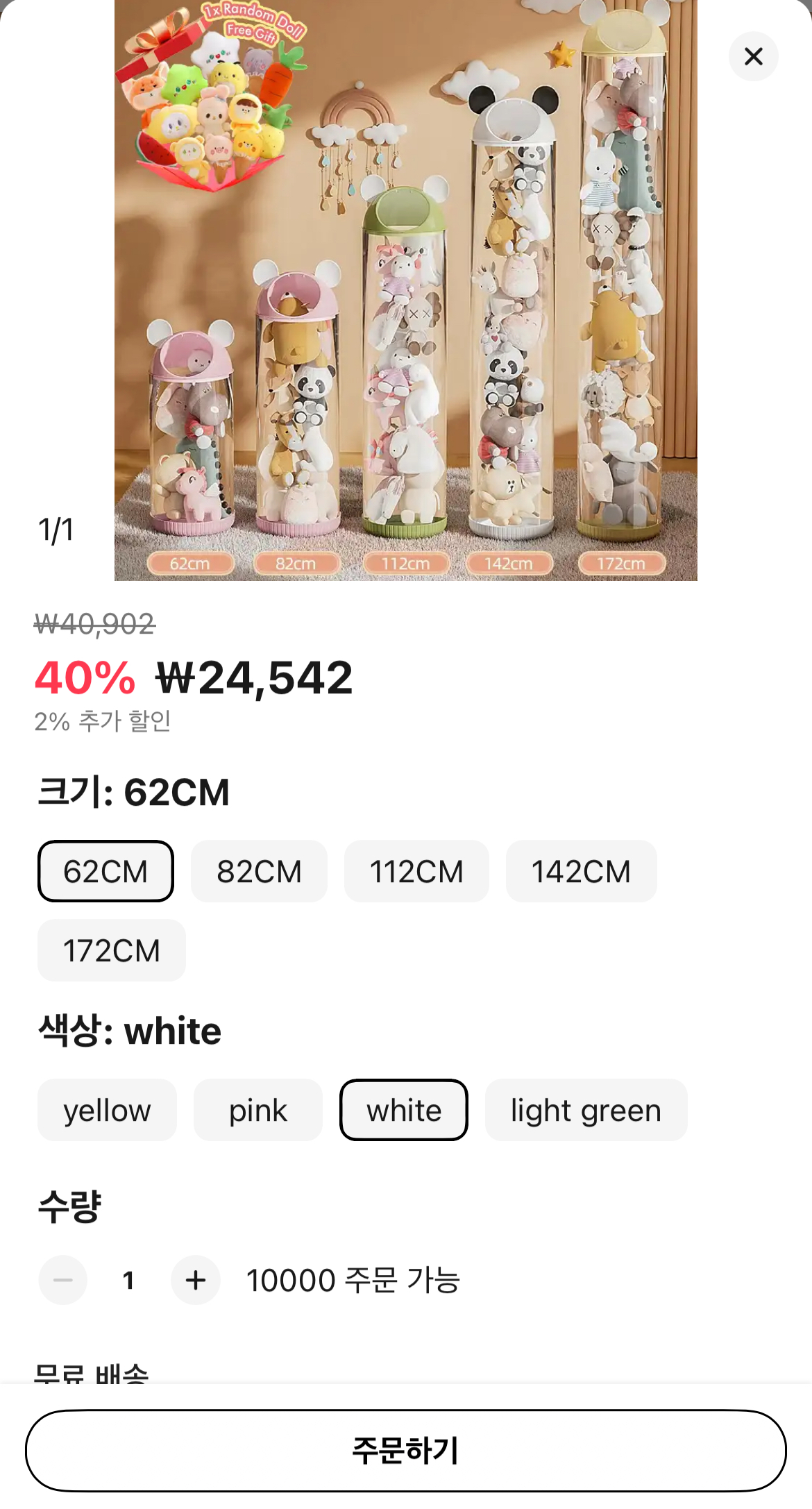국내 스토어에서는 마땅한 것을 찾지 못하다가 알리에서 이렇게 원통으로 생긴 인형보관함을 찾게 되어서 구매를 해보았습니다.