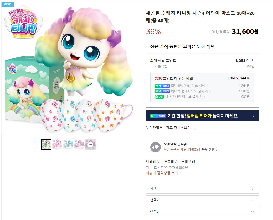 구매는 네이버 쇼핑 탭에서 티니핑 마스크를 검색하시면 참존 공식 총판몰이 나오는데요.