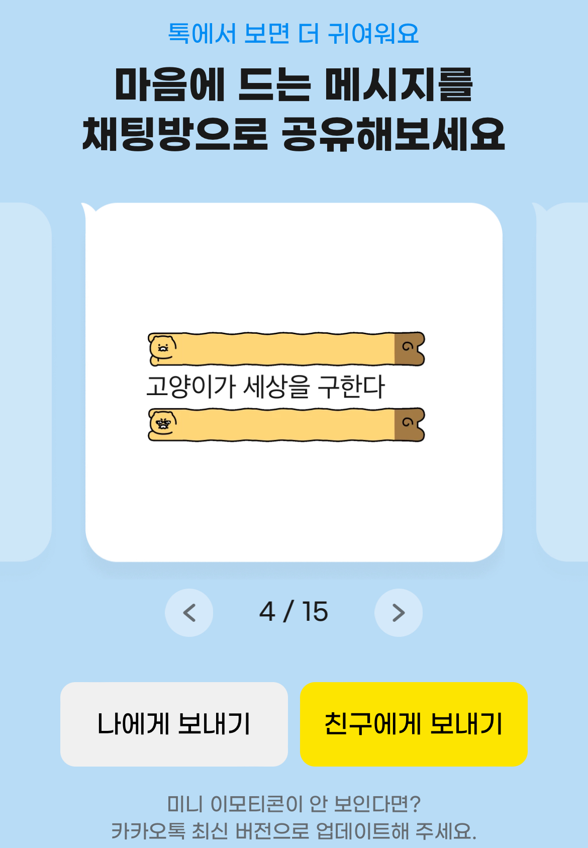 카톡에서 원래 있던 작은 이모티콘을 없앤다 했었던 거 같은데 이런 이모티콘을 새로 출시하려고 그랬던 거군요.