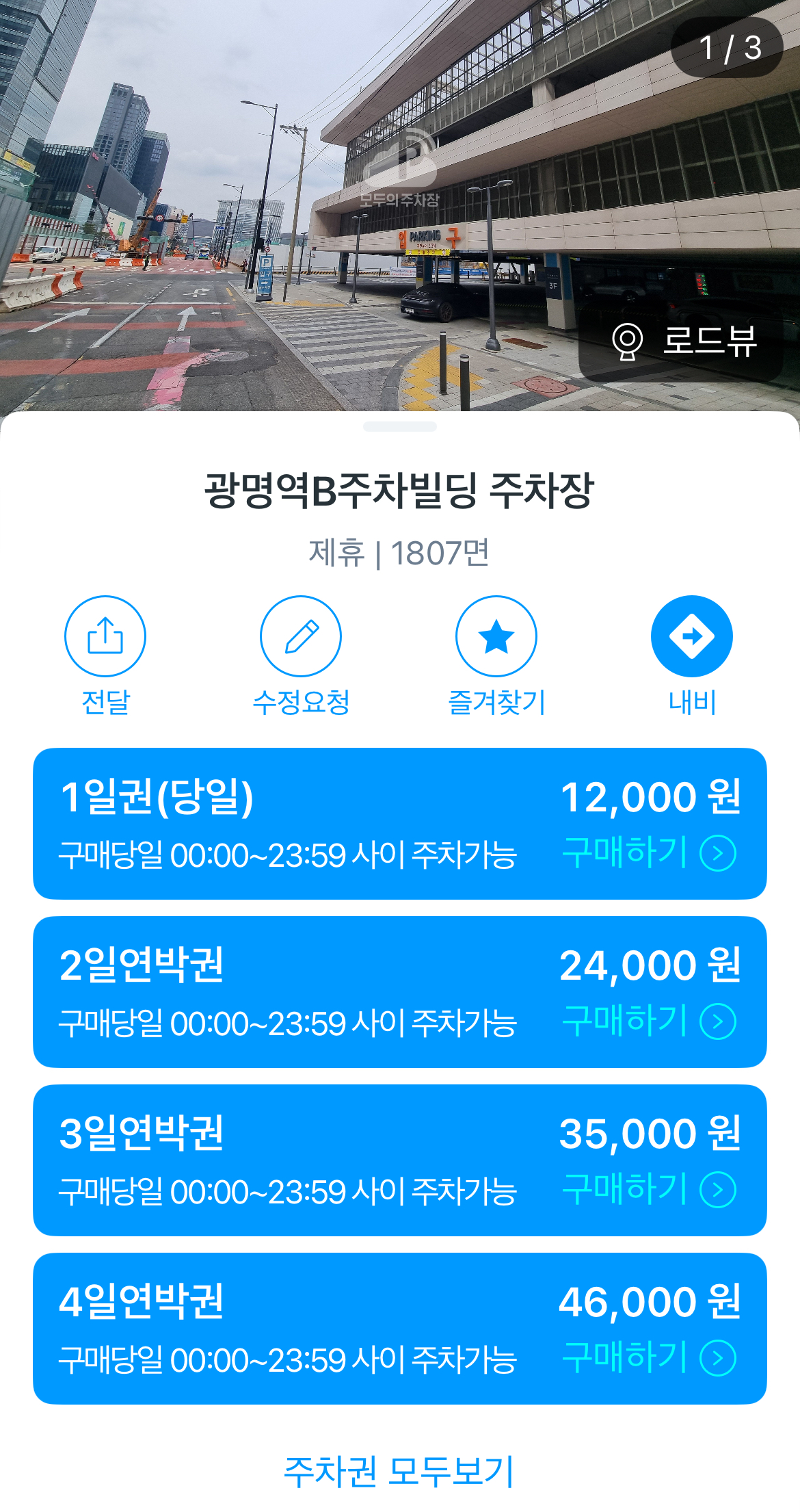 모두의 주차장 앱을 들어가니 2일 연박권으로 광명역B주차장을 24,000원에 이용할 수 있어서 한 번 이용해 보았는데요.