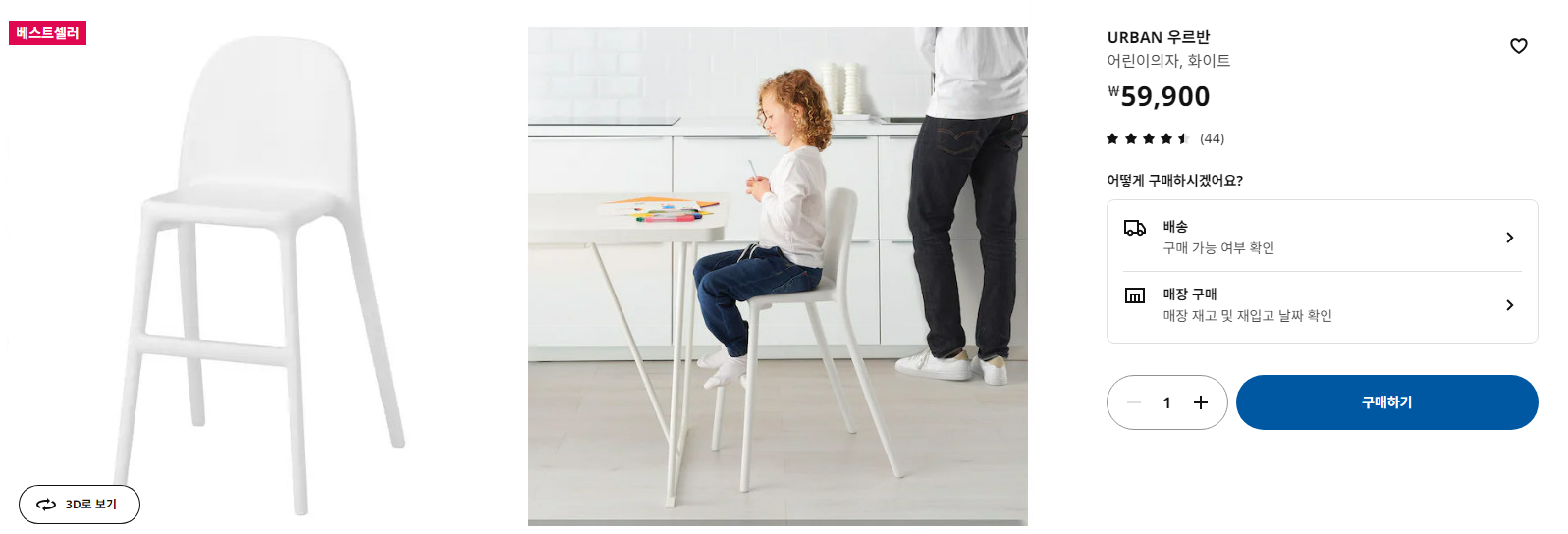 우르반 유아의자는 상대적으로 의자 가격이 저렴한데요. 현재 기준 (23년 11월 8일) 이케아 공식 홈페이지에서 59,900원에 판매를 하고 있는데요. 스토케의 가격이 20만원을 훌쩍 넘어가는 걸 감안하면 유아의자로써 가성비가 매우 좋다고 할 수 있습니다.