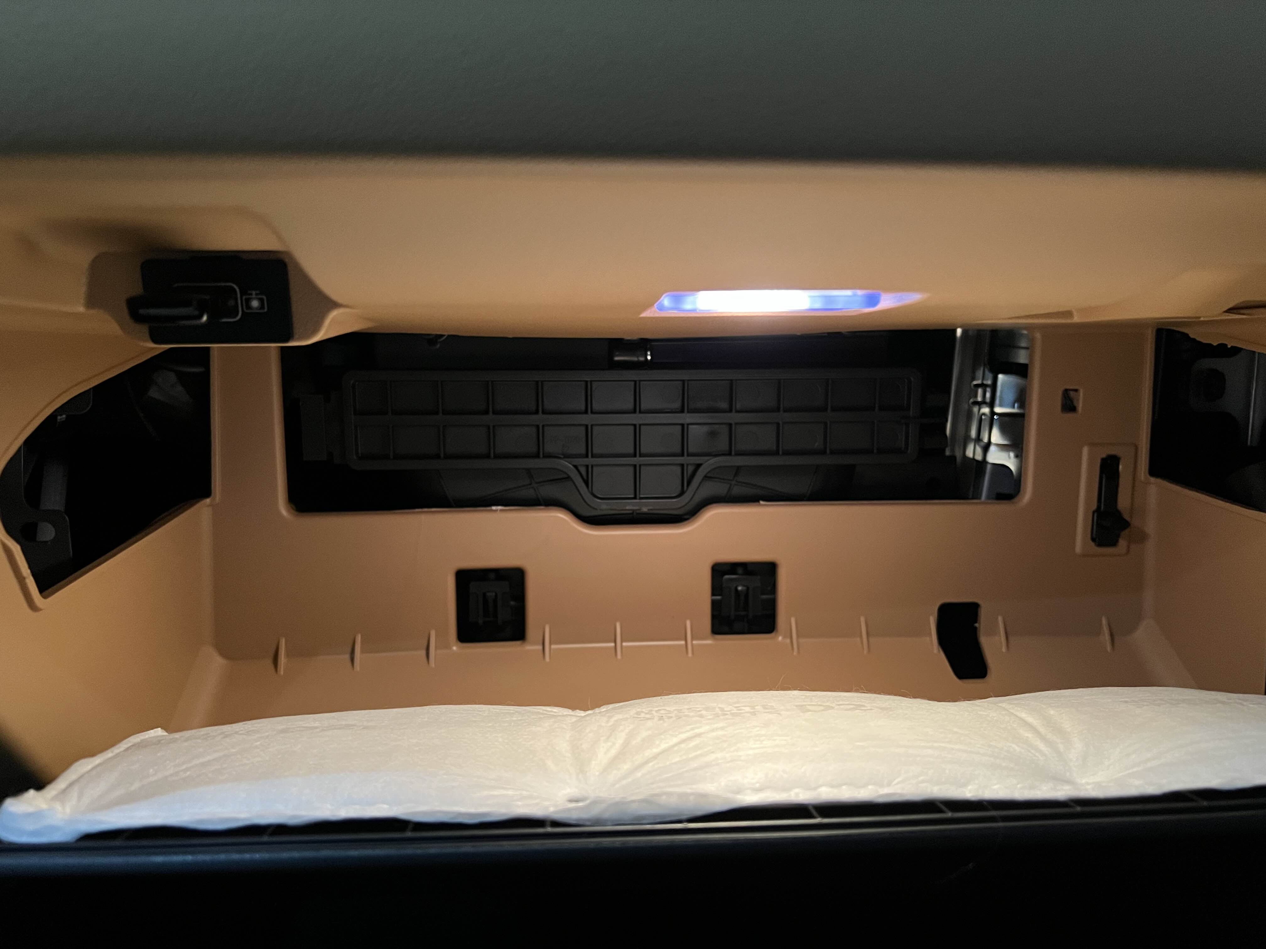 1. 먼저 글로브 박스를 열어줍니다. 오른쪽에 보시면 아래와 같이 연결이 되어있는 부분이 보이실텐데요.